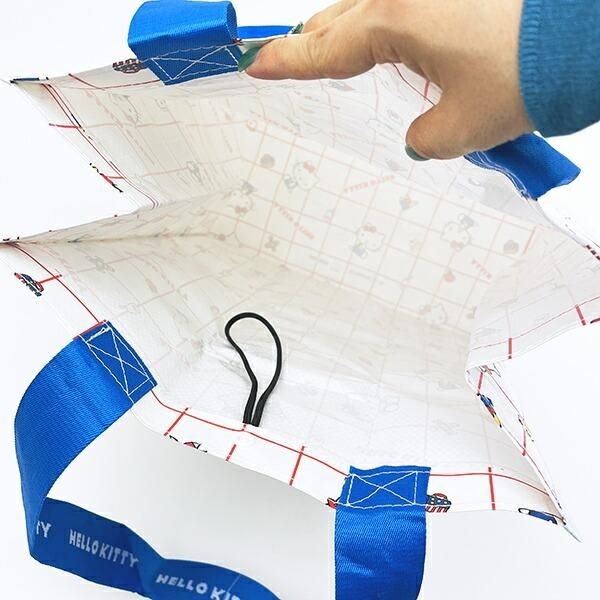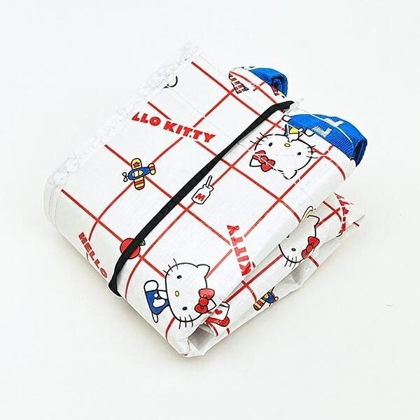 サンリオのエコバッグ。大きく使ってコンパクトに持ち運べます。ポリエチレン製で水に強く、軽いので使いやすさ◎