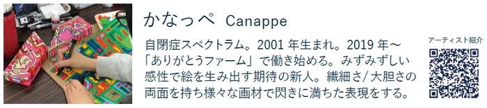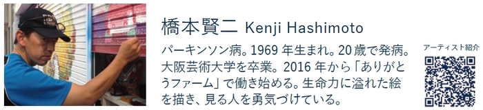 レンタルアートとは、ありがとうファームと月単位でのライセンス契約を結び、ライセンス料の70%はアートを描いたハンディキャップアーティスト本人の収入につながる仕組みです。ハンディキャップアーティストの作品が9作品展示されており、「知ることは、障がいをなくす。」というメッセージとともに、各作品に対応したQRコードを読み取ることで作者の今までの人生に触れることができます。また今後は、ありがとうファームのハンディキャップアーティストの作品とコラボしたオリジナルノベルティの作製、そしてオリジナルグッズの販売も進めていく予定です。