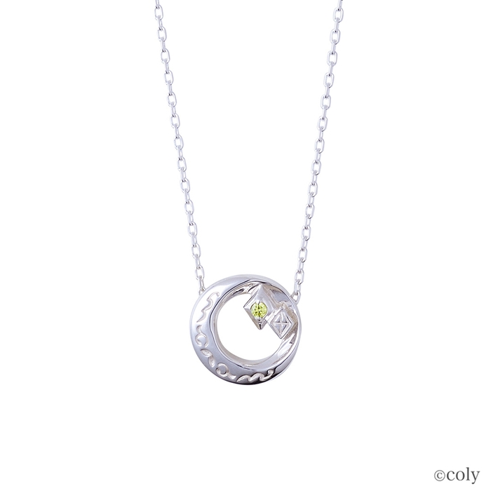 「魔法使いの約束」に登場する南の国の魔法使い、ミチルをイメージしたシルバーネックレスです。衣装の模様とブローチをモチーフにしたデザインに、イメージカラーストーンをセット。エンドチャームのプレートには名前を刻印しました。
