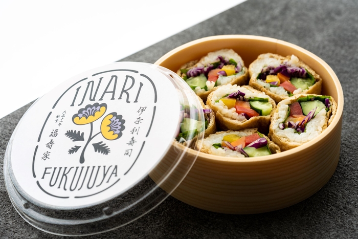 創業当初より受け継がれた「伊奈利寿司」という名称と油揚げを「裏返し」丸くふんわり酢飯を包み込む伝統の握り方を引き継ぎながら、「見た目でも楽しめる」を新しい福寿家のコンセプトとして、いままでに無いいなり寿司の販売を展開しています。「伊奈利」は福寿家の登録商標です。