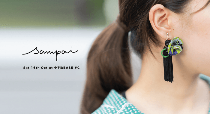 伝統産業や服飾産業で出る産業廃棄物を再利用し、製作を行うアクセサリーブランド「sampai」(運営:頼-tano- 代表:宮武愛海) は、10月16日(土曜日)に宇治市アーバンデザインセンター宇治「中宇治BASE」で開催される体感・交流型イベント【 中宇治 BASE #C 】に出店。sampai商品だけではなく、プロダクトデザイナーtuguが手がける個人作品も販売。