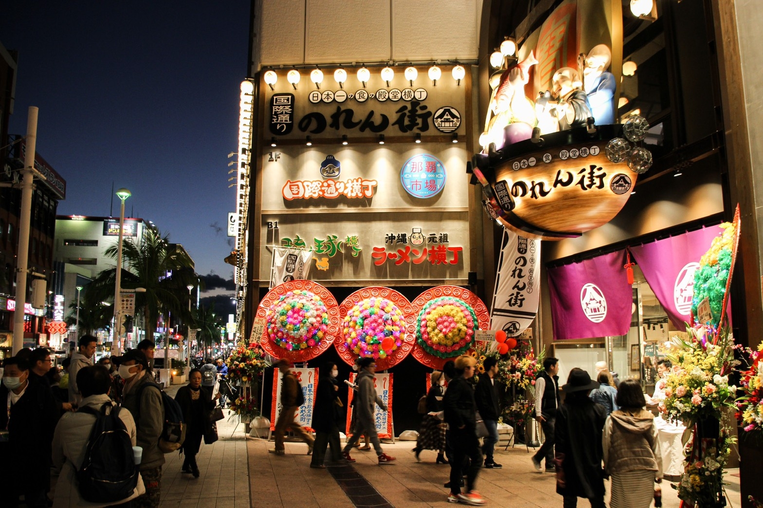 『国際通り横丁』『那覇市場』『琉球横丁』『竜宮通り粉もん横丁』の4つのエリアからなる食のエンターテイメントスポット。個性豊かな約30店舗が軒を連ねる横丁です。どこか懐かしくもあり見た目にも愉しい内装と、ありそうでなかったエッジの効いた業態の数々が皆様をお出迎え致します。そして【流し】によるパフォーマンスがより一層食事を愉しいものにし、ほかの横丁では楽しめない唯一無二の空間が国際通りのれん街にはあります。