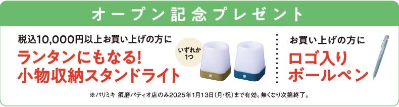 オープンを記念し、期間中税込¥10,000円以上お買い上げの方に「小物収納スタンドライト」を、