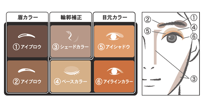 男性のカラーメイクは、女性のような華やかなメイクではなく、肌なじみのよいカラーを使います。鼻筋やまぶたにブラウンなどで陰影をいれることでぼやけた顔がくっきりと見せてくれます。ブラウン系、赤、オレンジは肌なじみがよく派手ではないので目立ちにくく、男性のカラーメイクに使いやすくなっています。