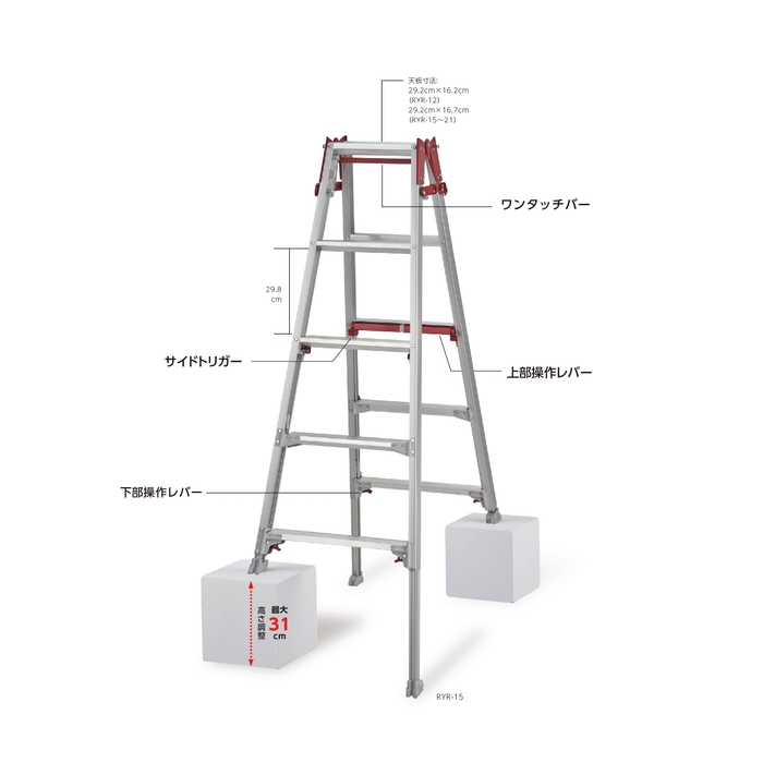 脚立の長さを立ったまま調整でき作業効率アップ! 上部操作タイプのはしご兼用伸縮脚立「シャガマン」が7月5日発売