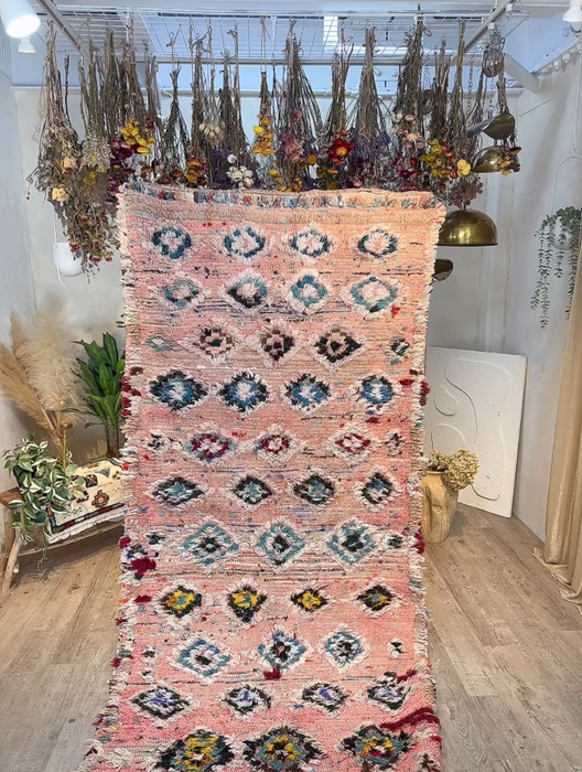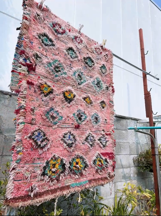 ボシャルウィットは、古布を再利用して作られるモロッコのラグ。遊牧民の女性たちが、着なくなった服や布を細かくカットし、カラフルに織り上げていきます。そのため、同じデザインは二つとなく、個性的でアートのような魅力があります。アップサイクルの精神が込められた、サステナブルなラグとしても注目されています。