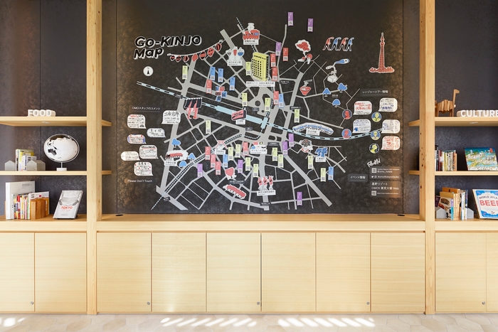 OMOでは、ホテルを中心とした街全体をひとつのリゾートとして捉え、ゲストにはホテルにこもらず、どんどん街にでかけてほしいと考えています。「Go-KINJO」は、ホテルから徒歩圏内の「街」を深く知り、エキサイティングなコトやファンタスティックなモノに触れ、街に溶け込むことをサポートするサービス。ガイドブックには載っていないリアルでタイムリーな情報が集まる「ご近所マップ(Go-KINJO MAP)」や、館内外でご近所のさまざまな魅力に出会える「ご近所アクティビティ(Local Guide Activities)」は、街を知り尽くした「ご近所ガイド OMOレンジャー」が担当。気さくかつ親身に旅をサポートします。