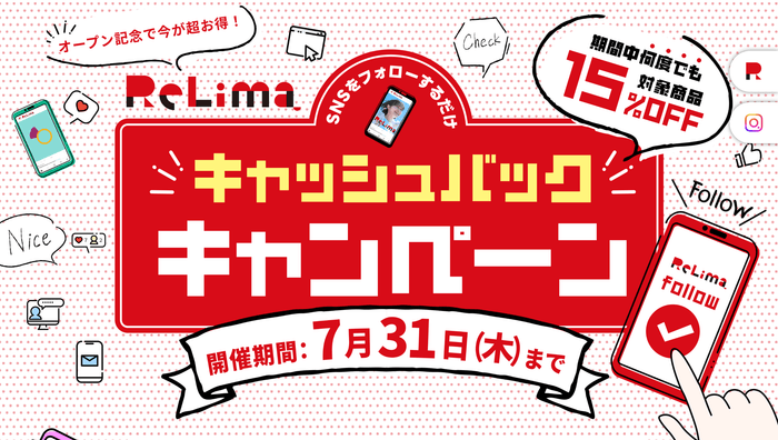 詳細については、下記のリンクから確認できます:https://jp.relima.jp/cashback/