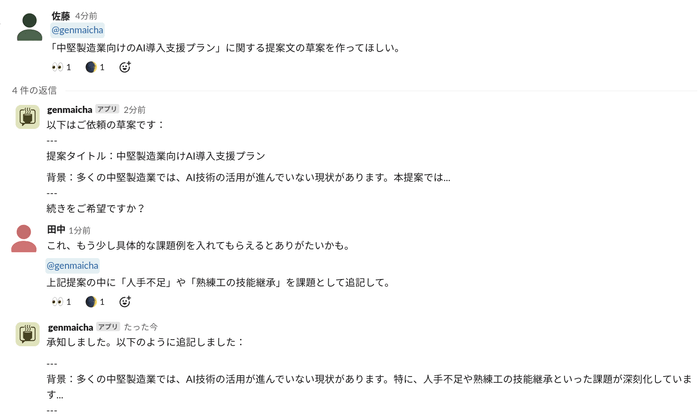 組織・チームの生成AI活用とコラボレーションを促進するSlackアプリ「玄米茶」提供開始