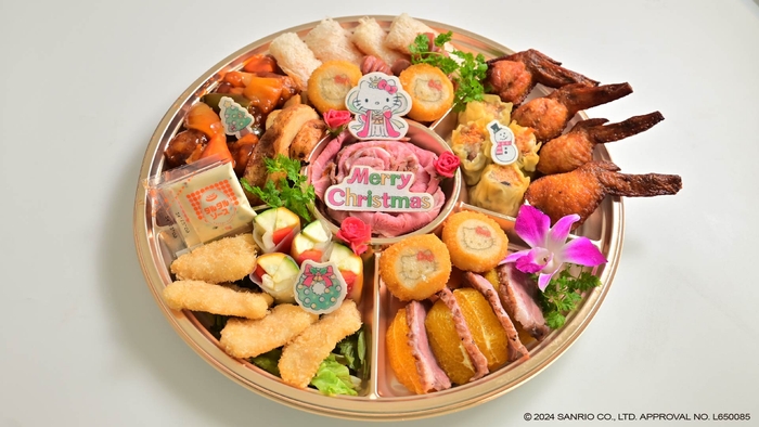 この冬、新たに登場する『クリスマスオードブル』は、ご家庭で気軽に本格的な中華レストランの味をお楽しみいただける、豪華なオードブル。見た目も華やかで、特別なクリスマスを彩る計11品の料理をご用意します。さらに、見た目にもこだわり、かわいいクリスマスの装飾や乙姫の衣装を着たハローキティがデザインされています。お子様から大人まで、家族みんなが笑顔になれる特別なクリスマスを演出いたします。