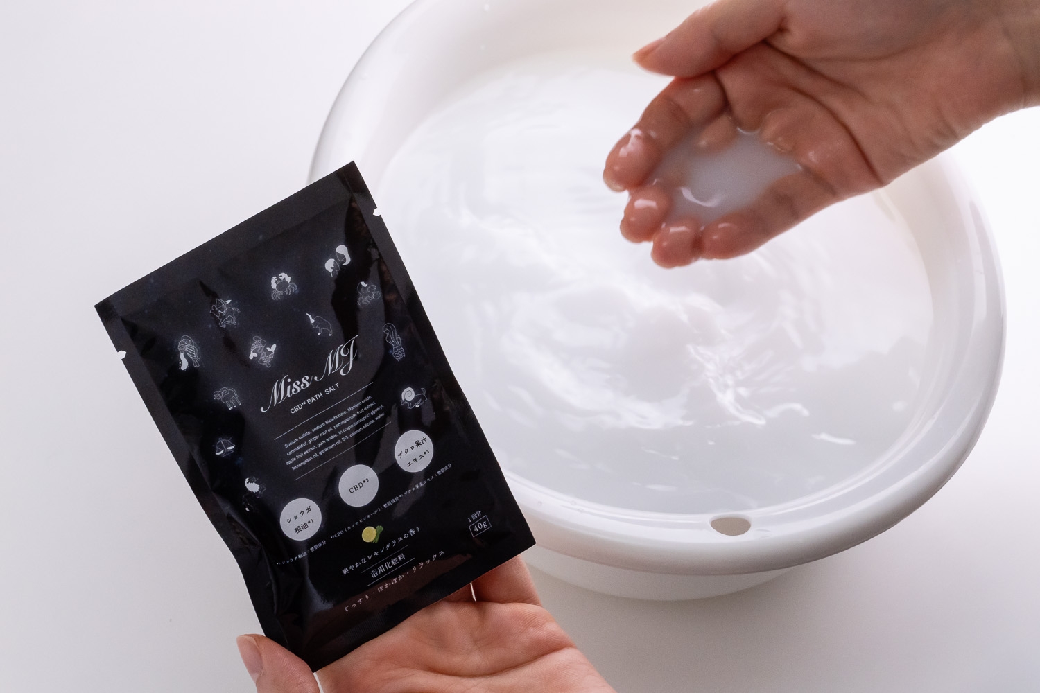 CBD 入りのバスソルトは1日の疲れを優しくリセット。