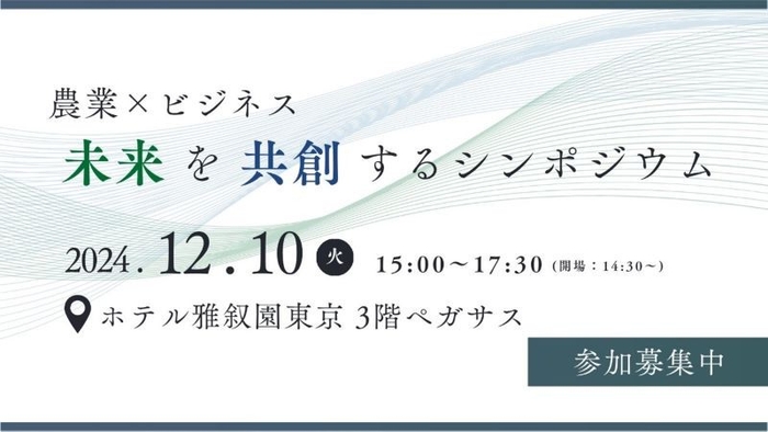 「農業×ビジネス 未来を共創するシンポジウム」2024年12月10日(火)開催決定!参加募集中