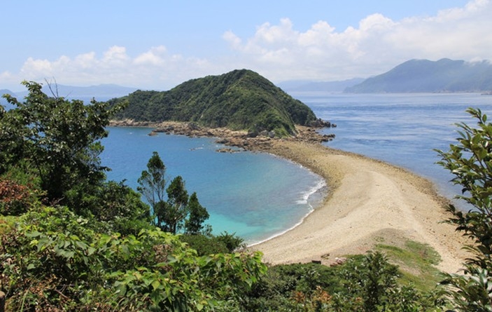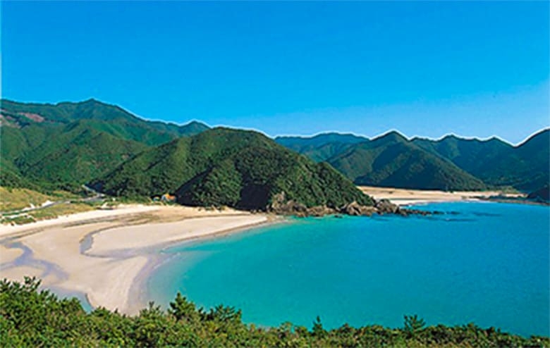 日本一美しいといわれる砂浜を持つ全国的にも有名な高浜海水浴場。輝くほどの砂浜を取り囲むように連なる山々の緑、波打ち際から水色、青色、藍色となって東シナ海に広がる様は美しいの一言。近くの展望所から見る景色も素晴らしく、沖に浮かぶ嵯峨島や水平線を真っ赤に染めながら落ちていく大きな夕陽は雄大です。