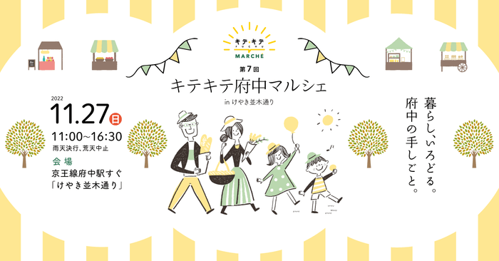 秋のけやき並木へキテキテ! 第7回キテキテ府中マルシェ2022秋 11月27日に開催!