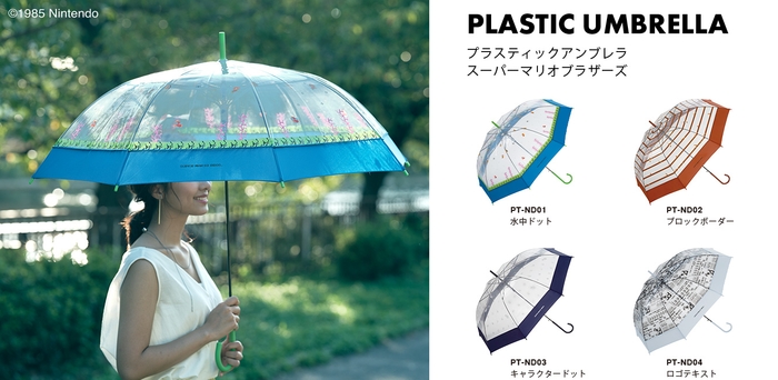 それぞれの好みの柄で気軽に楽しんでもらえるビニール傘のシリーズ。水中ステージをイメージした柄や、ステージ中のブロックのイラストを使用した柄など、雨の日に自撮りをしたくなるくらい自慢の1本になること間違いありません。