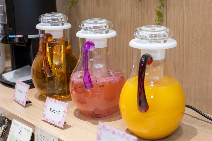 紅茶4種、コーヒー、オレンジジュース、アップルジュース、レモングリーンティ