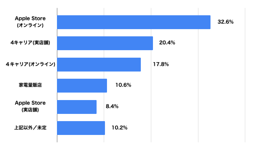 iPhone 17を予約・購入する場所を聞いたところ、「Apple Store(オンライン)」が32.6%で最も多い結果となりました。