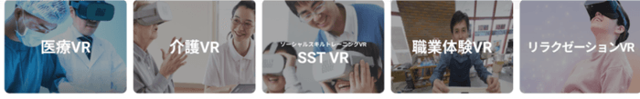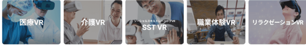 ジョリーグッドプラスでは、医療福祉スタッフの育成をする医療VR、介護VRを始め、障害者や患者向けのメンタルケア、就労支援ソーシャルスキルトレーニングなど、医療福祉に必要なVRカテゴリーがすべて揃っています。医療福祉業界で働くスタッフ向けの臨床教育はもちろん、患者向けの自立支援やリラクゼーションなど幅広い用途でVRトレーニングを提供することが出来ます。