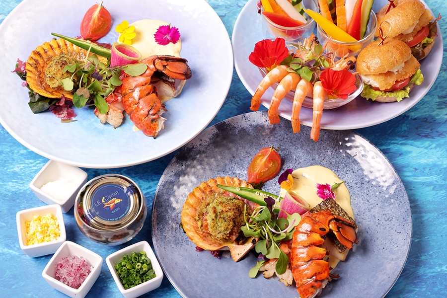 海と陸の幸を盛り込んだ豪華なお料理とシャンパーニュを堪能するゆっくりと流れるひとときに加え、ナイトカバナのお客様限定、インフィニティープール(8:00pm – 9:00pm)ご利用特典がさらに贅沢な夏の思い出を演出します。