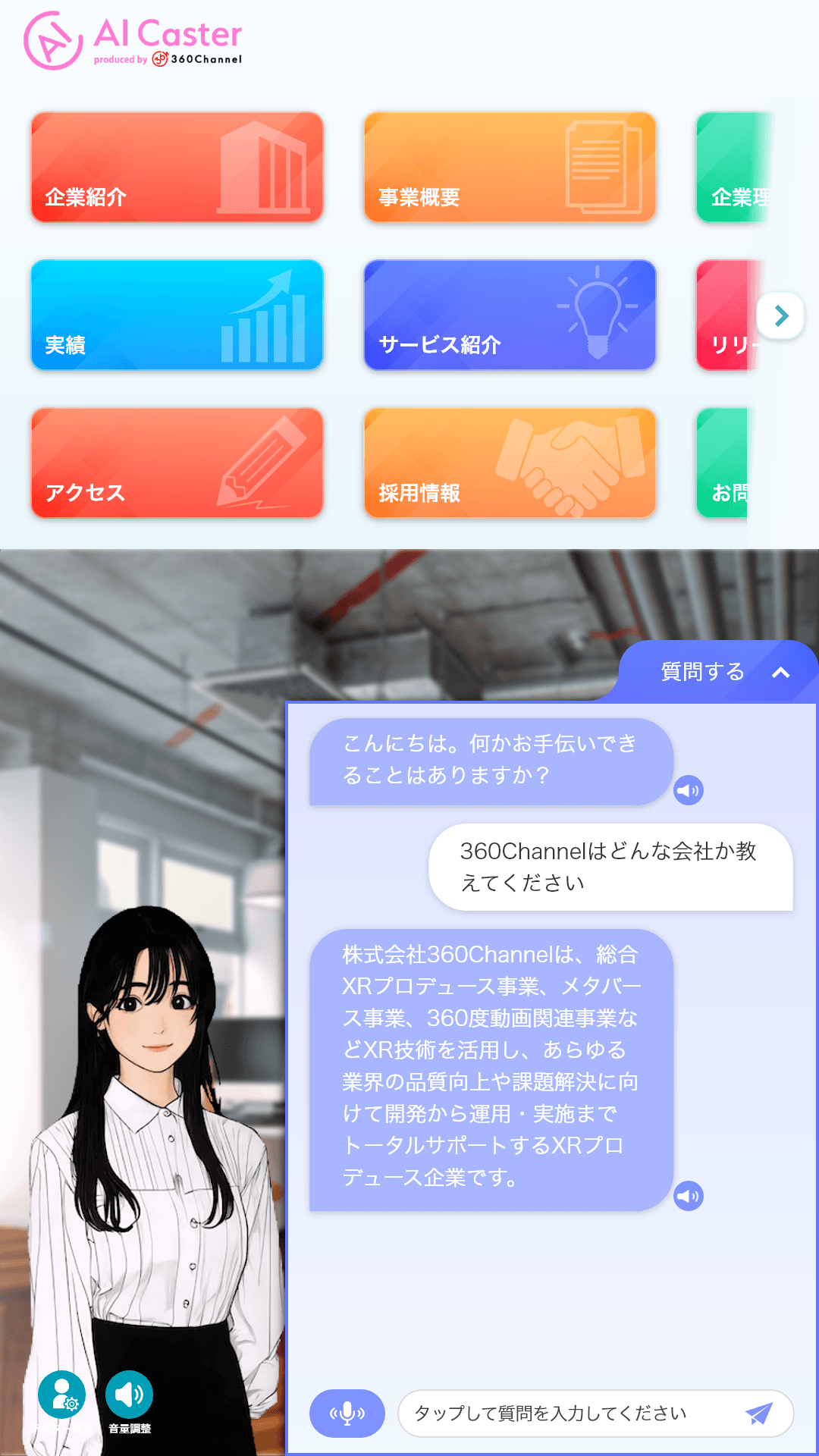 「AI Caster」は定型文での応答ではなく、自然な対話が可能なため、ユーザーはまるで人と会話しているかのような感覚で情報にアクセスできます。