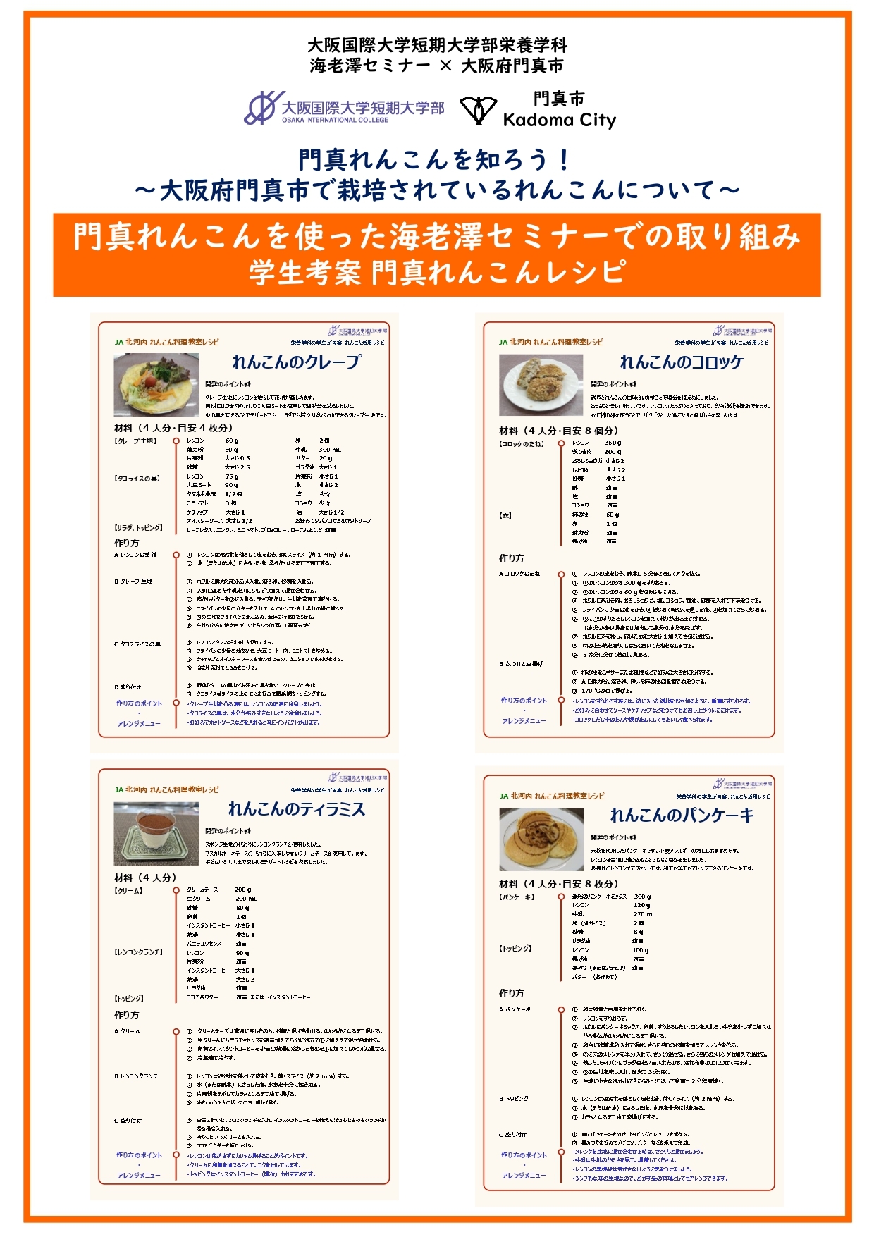 JA北河内女性会×栄養学科海老澤セミナー~学生メニュー開発による「れんこん料理教室」~