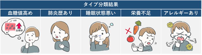 その結果、インフルエンザ罹患リスクの高い特徴的なグループとして血糖値が高めのグループ、肺炎歴があるグループ、睡眠状況が悪いグループなどの存在が示唆されました。これら特徴の多くはインフルエンザを含む上気道感染症の罹患要因に関する先行研究と整合性がとれており、本手法は有用であると考えられました。