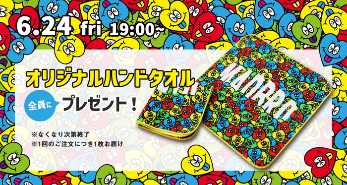 皇治選手プロデュースブランド『MADBRO』(マッドブロ)は本日6月24日19時のご注文分よりご購入者全員にノベルティとしてハンドタオルをプレゼントいたします。