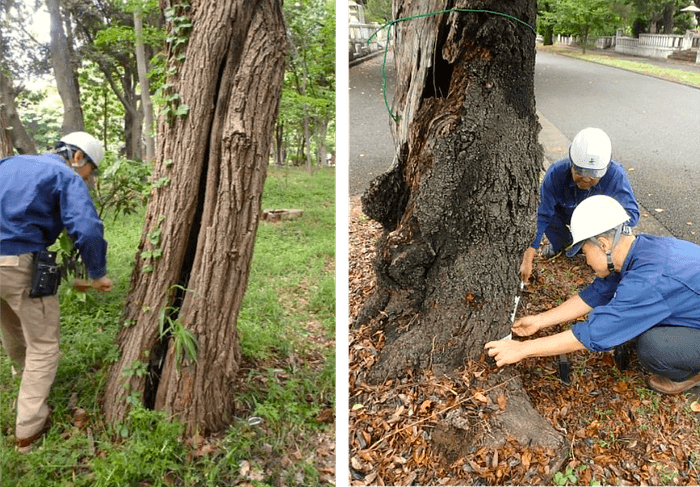 当協会では、ご来園者様の安全を確保し、安心してご利用していただくため、定期的に各園の樹木の点検を行っております。