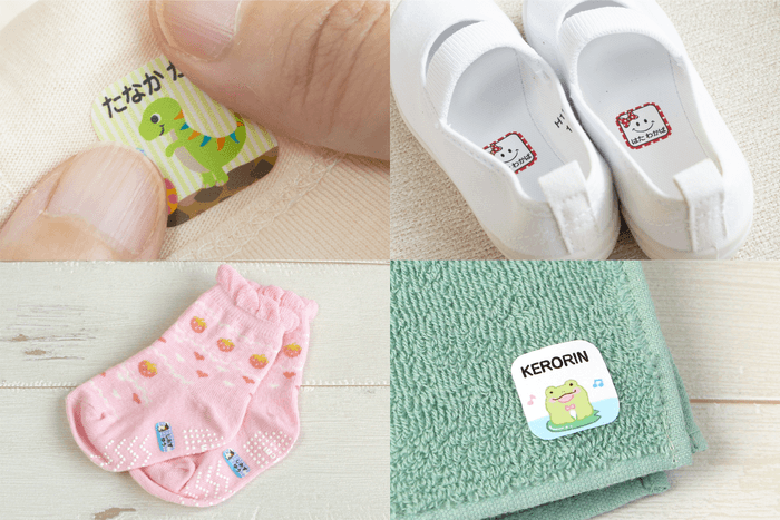 鉛筆・色鉛筆・赤鉛筆、コップ袋やランチョンマット・タオル・上靴・靴下まで、お子さまが使うあらゆるアイテムに、直接ペタッと貼るだけで名前つけを完了できます。