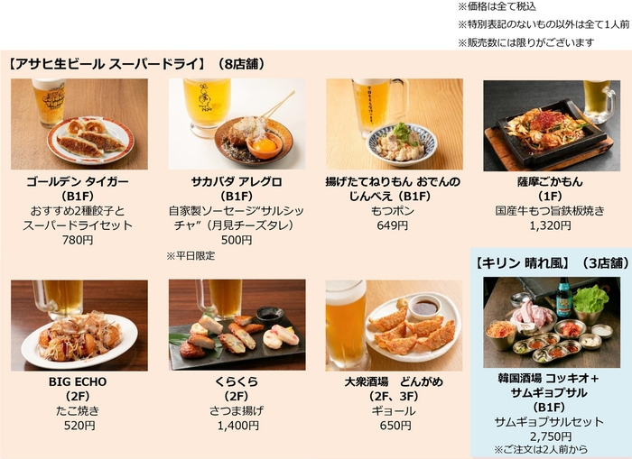 (1)4大ビールメーカーとフードの特別セットメニュー提供(全17店舗)