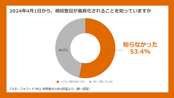 「相続」について、『マネーフォワード ME』利用者にアンケート調査を実施。 来る2024年の相続登記の義務化「知らなかった」はおよそ50%。