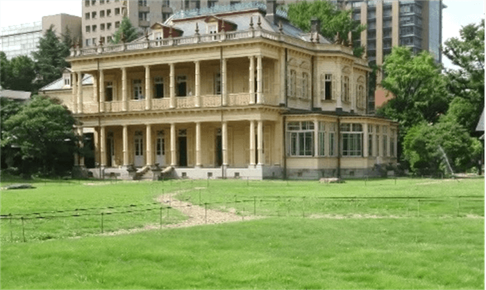 往時は15,000坪の敷地に、20棟以上の建物が立ち並んでいましたが、現在は3分の1の敷地面積となり、ジョサイア・コンドル設計の洋館と撞球室、名棟梁大河喜十郎が手がけた和館大広間の3棟が残っています。