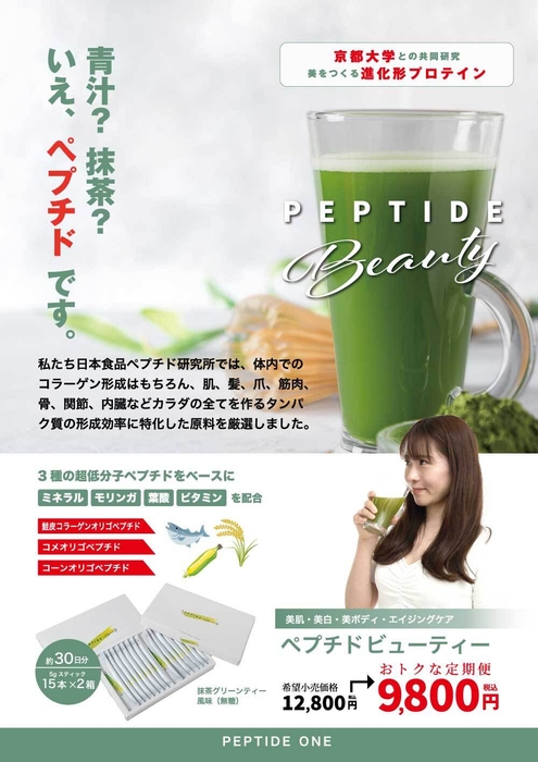 ペプチドビューティーは、弊社研究所が多くの大学との共同研究やペプチドマッスルなどシリーズ商品で得た知見をもとに、美肌や美白など、美容やエイジングケアを一層強化する目的で開発された製品です。