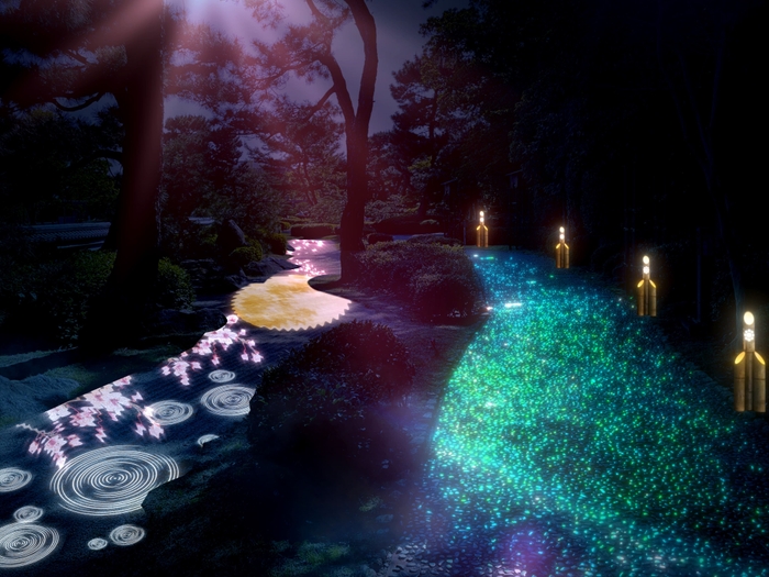 本イベントは、「日本庭園×デジタル」をテーマに、伝統的な日本庭園空間に最先端のデジタルアートを融合させた新感覚の没入型体験を提供します。プロジェクションマッピング、ホログラム演出、光と音のインタラクティブ演出など全8コンテンツを展開し、幻想的な“夜の庭園”を創出します。