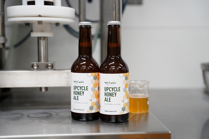 完成したのは、ミールミィで扱う蜂蜜の品質確認用サンプルとして保管されていた国産蜂蜜をビールの副原料として再活用したハニーエール。蜂蜜の優しい風味が口に広がるゴールデンエールです。2025年3月13日(木)より「ウッドミルブルワリー・京都」「蜂蜜専門店ミールミィ」などで一般販売予定です。
