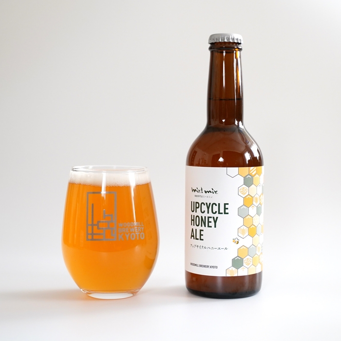京都市上京区にあるマイクロブルワリー「ウッドミルブルワリー・京都」のオーナー兼ブルワー辻本大和氏とミールミィがタッグを組んだ、アップサイクルハニーを使用したハニーエール。ミールミィで扱う蜂蜜の品質確認用サンプルとして保管されていた国産蜂蜜をビールの副原料として再活用したハニーエール。蜂蜜の優しい風味が口に広がるゴールデンエールです。※要冷蔵