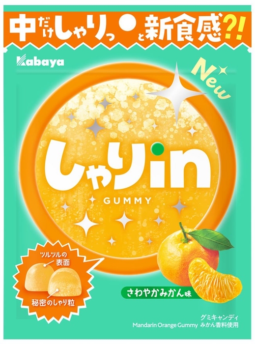 消費者からのご要望を受けて開発した※2『しゃりinグミ みかん』は、しゃりっとした食感とマッチする、さわやかな甘みのみかん味に仕上げました。