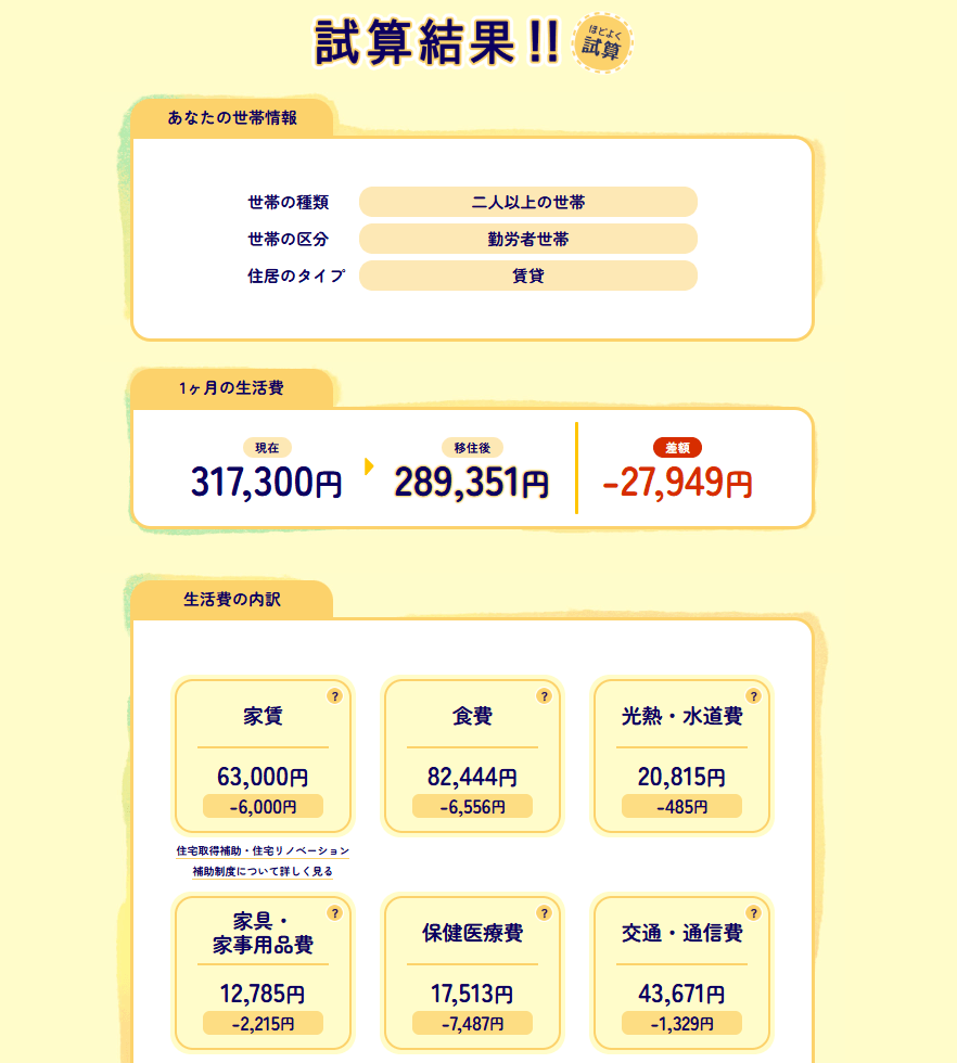 取手市へ移住した際の生活費の変化をシミュレーションできるコンテンツを追加しました。「家賃」や「食費」「光熱・水道費」などを比較できます。より具体的に取手市の生活をイメージしていただけます。