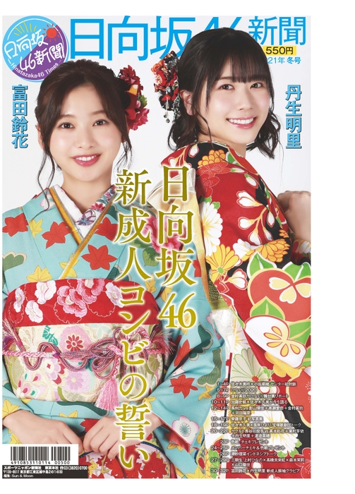 この1年の間にメンバーたちもさらに成長しました。今回のダブル表紙では、小坂菜緒と佐々木美玲の初のセンター対談が実現。首都圏のコンビニエンスストアなどで購入できる通常版では、新成人の富田鈴花と丹生明里が日向坂46新聞だけで見られるオリジナル超高級振袖姿を披露しています。一方、ネット通販限定版の表紙では、3期生の4人が初集合しました。2021年にさらに飛躍する4人は要注目です。