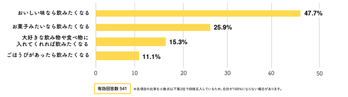 ■ おいしくなれば飲みたい!お菓子や好きな食べ物など味重視