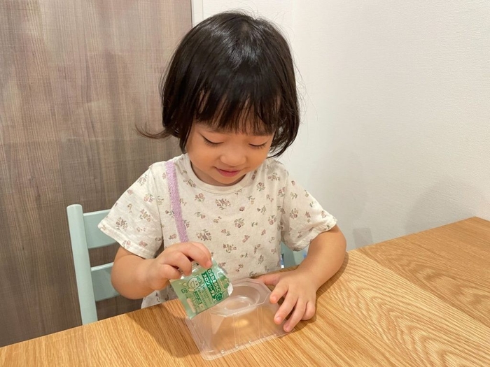 通年性アレルギーを発症しており、具合が悪いわけでもないのに、毎日薬を飲まなければならない息子。これまで薬の時間は親子ともに辛いものでした。しかし、「おくすりパクッとねるねる」の箱を見た瞬間、目をキラキラさせながら「やりたい! 早く作りたい! 」と興味津々に。