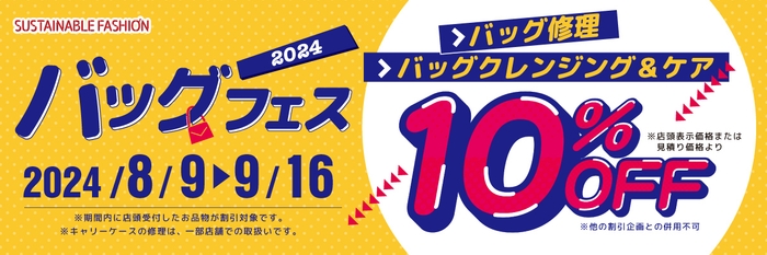 8月9日「かばんの日」記念!バッグ修理・クレンジング&ケアが 10%OFFになる「バッグフェス」を9月16日まで開催