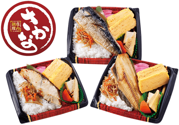大きな魚の塩焼きをごはんの上にどーんと置いた新商品をはじめ、人気の玉子焼きを使用した弁当や健康にこだわった弁当など豊富に品ぞろえいたします。春には、桜の名所でもある川沿いにてお花見をする際にライフの弁当がおすすめです!