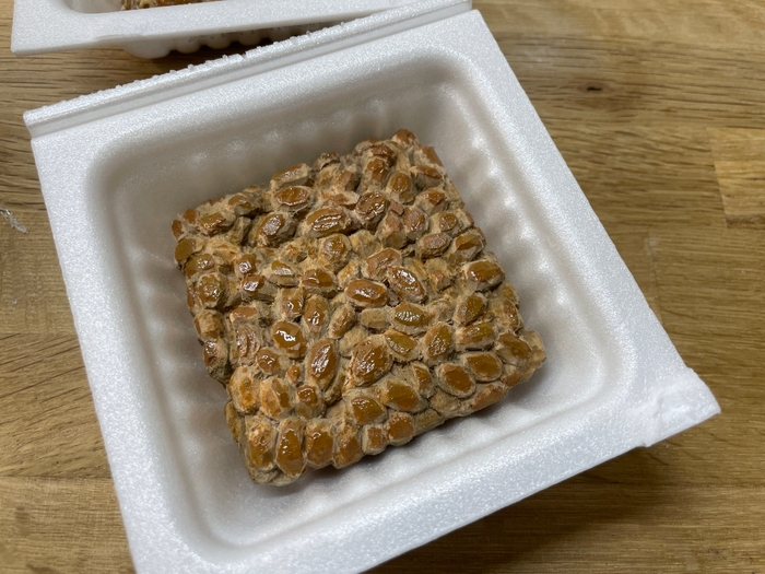 パックを空けたばかりの納豆。ネバネバしそうなこの納豆も、木でできています。