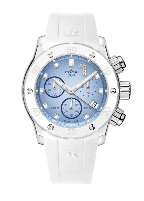 最高速度が時速200kmを超え海のF1とも称されるパワーボートレースの、ダイナミックかつラグジュアリーな世界観を投影した、エドックスのフラッグシップコレクション『クロノオフショア1』のレディースモデルです。