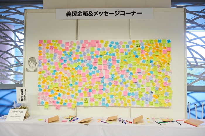 京まふ会場内に設置し,多くの方から義援金とメッセージを頂戴しました。