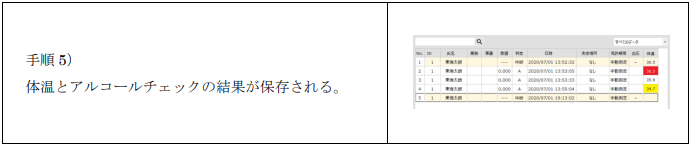 当システムは、アルコール検知記録機能に体温記録機能を加えたものですが、お客様のなかでは、アルコールチェックは不要で、体温チェックだけを記録・管理したい企業様ニーズも想定され、以下の運用も可能となっています。