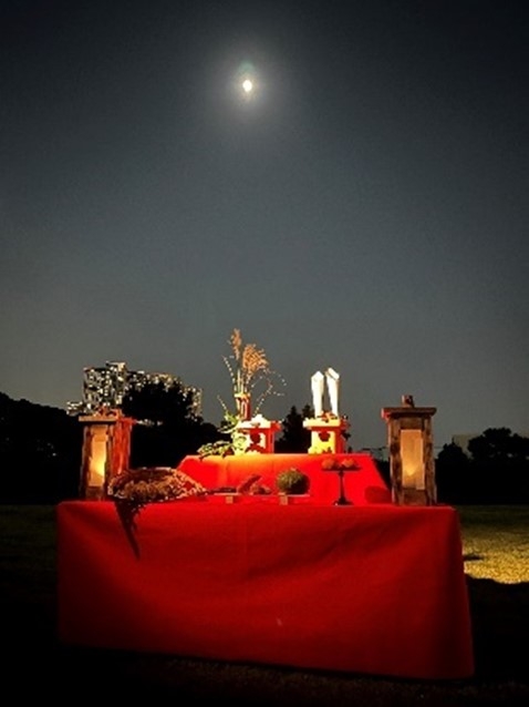 内容:月見台にお団子や野菜等のお供えをし、笛の演奏を行います。