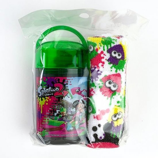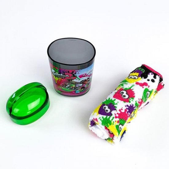 ゲームのイラストが入っているケースに、イカたちのデザインのおしぼりタオルがセットになっています。