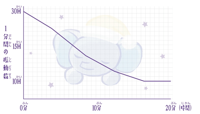 白濱医師の1万件以上の臨床結果に基づいて監修された鼓動メカユニットは、1分間に30回振動するリズムで始まり、徐々に回数が減り強さも弱くなっていく20分間のプログラムで動作します。